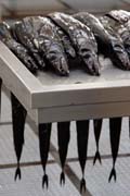 Vrátili jsme se na promenádu, prošli po nábřeží, dobili naše autobusové karty a pak jsme zašli do místní tržnice. Stánky s ovocem a zeleninou kypěly barvami, ty s látkami a proutěnými výrobky byly vedle nich docela monotonní. V části tržnice věnované rybám už bylo prázdno, jen pár hlubinných ryb espada a hlavně jejich uřezané hlavy. Tyhle metr dlouhé ploché, kravatám podobné ryby jsou zdejší specialita. Žijí v hloubkách okolo 500m a v noci vyplouvají výš, a to je příležitost pro rybaře spustit třista metrů pod hladinu sítě a vytáhnout na loď tyhle podivné živočichy s velkýma očima a jehlovými zuby, už mrtvé, zabité dekompresí.